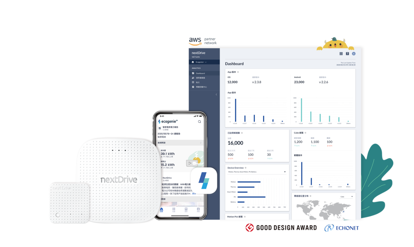 未來即在眼前,為打造萬物聯網的世界,NextDrive 以能源物聯網為軸心,重新思考人們看待能源服務的想像。Ecogenie+ 實現了我們善用每度電的願景。隨著家庭能源服務的演變,我們提供用戶資訊豐富、互動性高、有趣且優質的體驗。帶領世界以全新的視角看待能源服務。