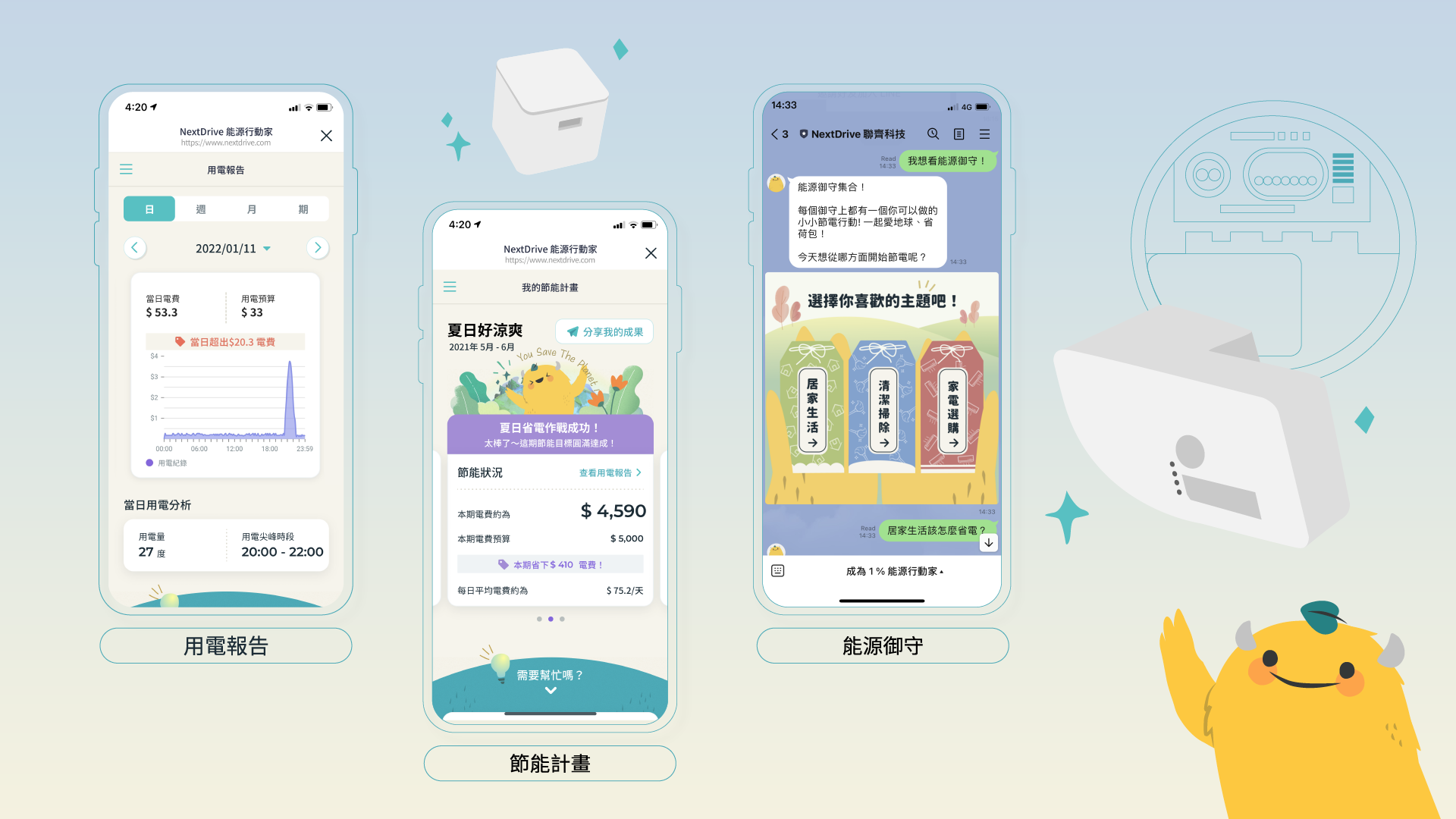 NextDrive 創立於 2013 年,致力發展物聯網與能源科技,以實現「善用每一度電」的生活型態。透過軟硬體整合、數據分析與使用者體驗,NextDrive 串聯起能源生態系的橋樑,提升能源使用效率,創造使人人受惠的能源物聯網平台。