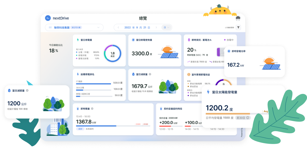 透過 AI 需量調控功能,用戶可每日查看節省電費和避免超約的次數,並以月為單位比較導入和未導入太陽能及儲能的節省效益,精確掌握節電比例和超約費用減少情況,有效降低運營成本